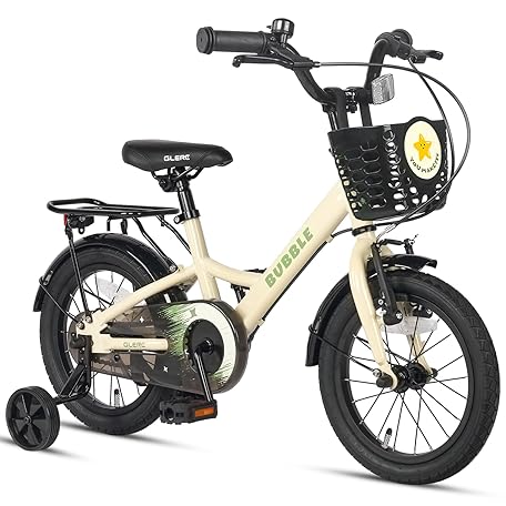 Glerc Bubble Kids Bicycle, 12/14/16 Inches, Cute Star Pattern, 2-7 Years Old, Boys Cool Bicycle, Auxiliary Wheels/Kickstand (16 inch) / Front Wheel Brakes/Front Basket/Rear Carrier/Mud Flaps Included