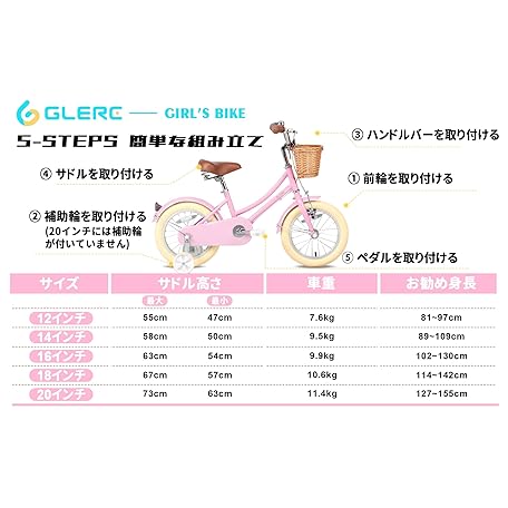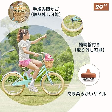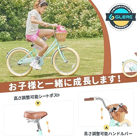 Thông tin sản phẩm [Glerc] Little Molly 20 Inch Girls Children's Bicycle, Cute Retro Kids Bike, Lower Grade, Hand Woven Fujimae Basket Kickstand, 6-12 Years Old, Multicolored