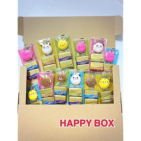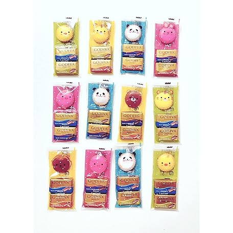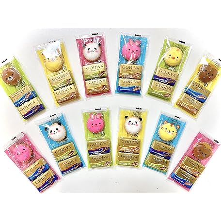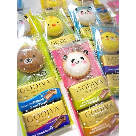 • GODIVA Chocolate and Animal Cracker Petite Gift (Set of 12) Wrapped in Pink Light Blue Yellow Green Bag