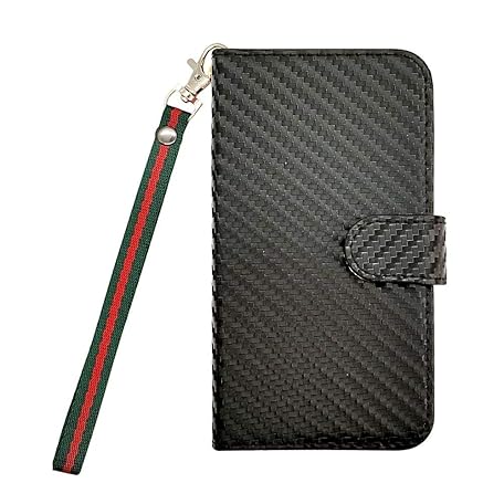Google Pixel 3 XL Compatible Notebook Type Carbon Black Border (Green x Red) with Hand Strap Hole Strap Hole Strap Hole Strap Hole Simple Stylish Cute Smartphone Plain Leather Case Diary Type