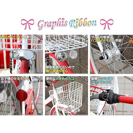 GRAPHIS GR-RIBBON Children's Bicycle, For Girls, 6 Speeds, 20/22/24 Inches, Auto Light, 3 Colors Available
