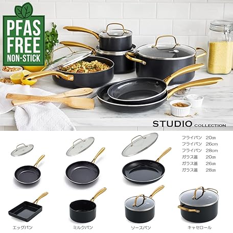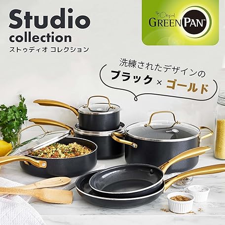 • Greenpan Studio, Ceramic Coating with Mineral Ingredients Derived from Sand, Without Toxic Substances, 7.9 inches (20 cm), IH Gas Compatible, Non-Stick, High Thermal Conductivity with Diamond