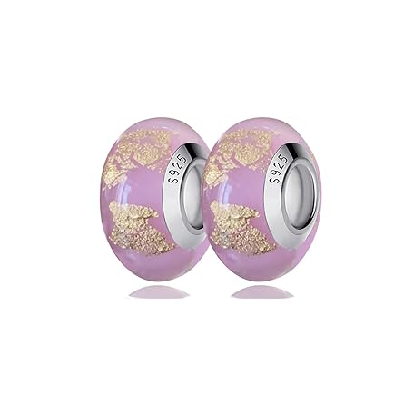• GUAIHAODE 2pcs Murano Glass Charms for Pandora Bracelet Genuine Sterling Silver Charms Women Bead Charms, Glass, Glass