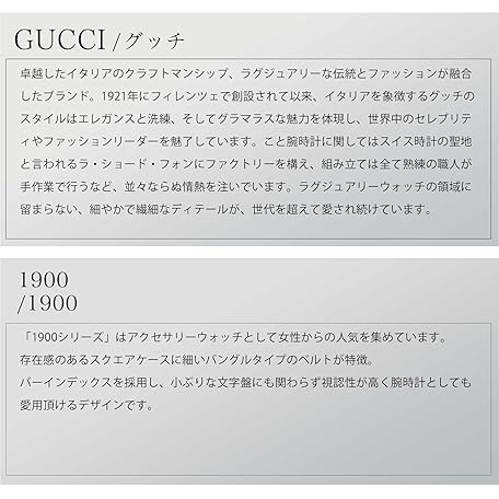 Thương hiệu GUCCI(グッチ) là cái tên nổi tiếng được rất nhiều khách hàng trên thế giới chọn lựa. Với kiểu dáng đẹp mắt, sang trọng, sản phẩm [GUCCI(グッチ)] グッチ 腕時計 1900 ブラック文字盤 YA019517シルバー [並行輸入品] là sự lựa chọn hoàn hảo nếu bạn đang tìm mua một món cho riêng mình.