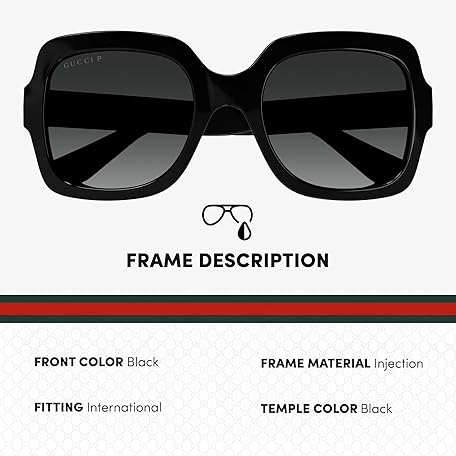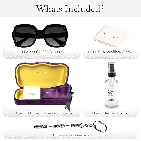 Gucci GG1337S Oversized Square Shape Women's Sunglasses + eSHADES Luxury Eyewear Kit Set, Black, 54mm, Black///White, 54mm