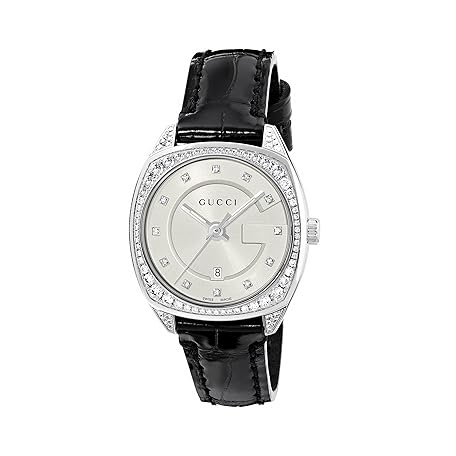 Gucci Swiss Quartz Stainless Steel and Leather Dress Black Ladies Watch (Model: YA142507)