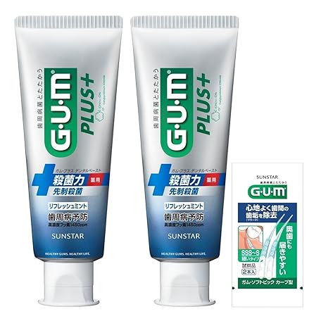 Thông tin sản phẩm GUM Plus (Quasi-Drug) Dental Paste Medicated Toothpaste, Refresh Mint, 2.2 oz (120 g) x 2 + Bonus (Amazon.co.jp Limited Edition)