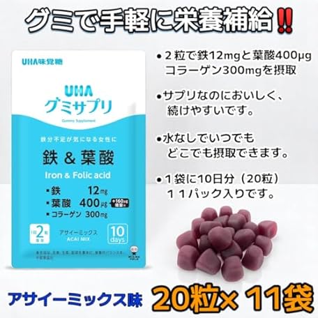 Sản phẩm Gummy Supplement, Iron & Folic Acid, Acai Mix, 110 Day Supply, 220 Capsules (11 Bags), Large Capacity, Commercial Pack đang được bán với giá ưu đãi là $19.8707 tại nước Nhật.