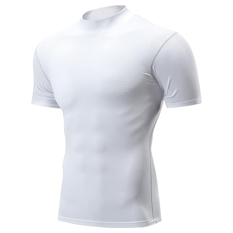 Guooolex Men's Compression Wear, Short Sleeve, Rash Guard, High Neck, Cool, Sports Inner Shirt, UV Protection, Underwear, Compression Top, Sweat Absorbent, Quick Drying, white