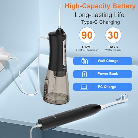 Thông tin sản phẩm H2ofloss 音波電動歯ブラシとウォーターフロッサーコンボ 充電式 2000mAh歯ブラシ 2500mAh 口腔洗浄器 300mlタンク付き ブラシヘッド4個 ノズル5個 2イン1 家庭や旅行用 (ブラック)