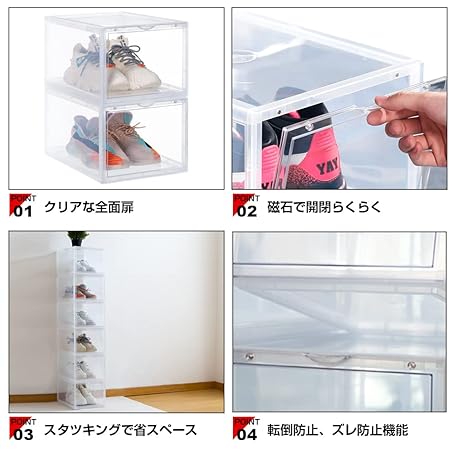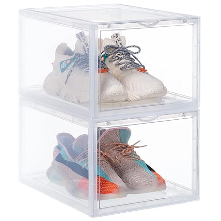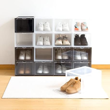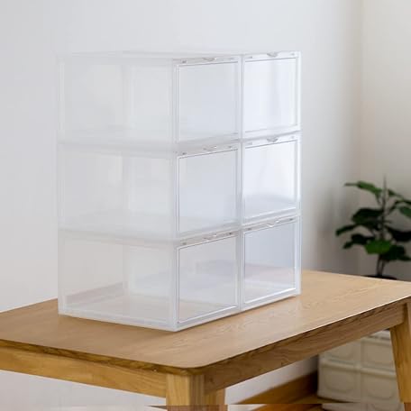 Thông tin sản phẩm Hachibanya Shoe Box, Sneaker Case, Clear, Sneakers, Shoe Storage Box, Case, Shelf, Entryway, Large Capacity, Plastic, Transparent, White 2 Piece Set