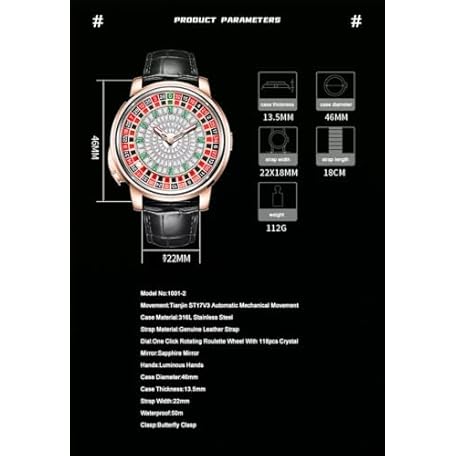 Sản phẩm HANBORO 腕時計 メンズ, 46mm 自動巻き ステンレス鋼 50m 防水 機械式 発光 サファイアミラー,ワンクリックボタンで回転するホイールゲーム クリスタル文字盤 (腕時計 メンズ 6) đang được bán với giá ưu đãi là $228.1697 tại nước Nhật.