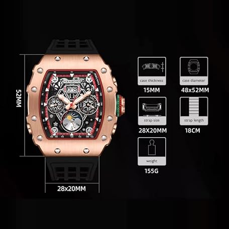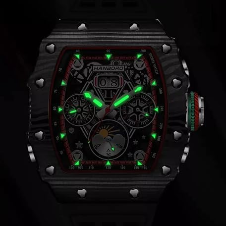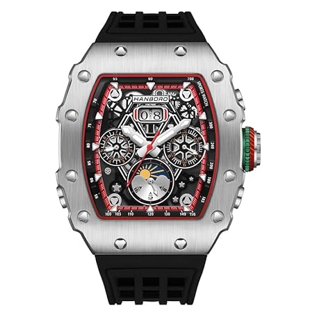 Thông tin sản phẩm HANBORO 腕時計 メンズ, 自動巻き 時計 ステンレス鋼 樽型デザインの時計ケース 腕時計 50m 防水 機械式時計 高級時計 発光 文字盤機能:月、日、日 (腕時計 メンズ 2)