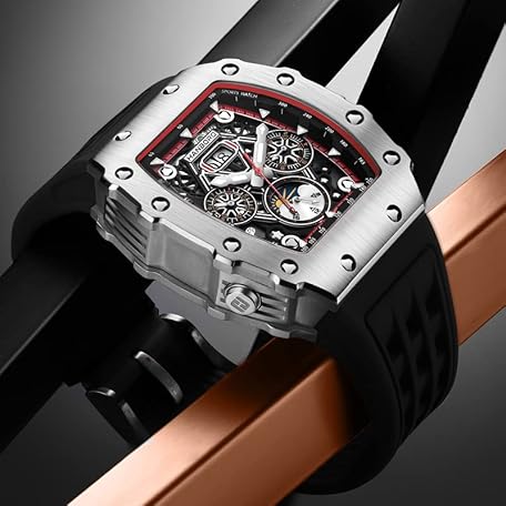 • HANBORO 腕時計 メンズ, 自動巻き 時計 ステンレス鋼 樽型デザインの時計ケース 腕時計 50m 防水 機械式時計 高級時計 発光 文字盤機能:月、日、日 (腕時計 メンズ 2)