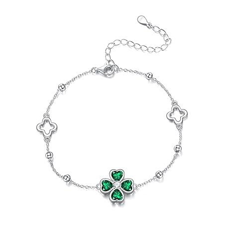 Hancock Four Leaf Clover Bracelet S925 Sterling Silver Bracelet Lucky Clover Bracelet for Women Wife Mom Gift