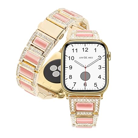 • Handodo キラキラジュエリー ダイヤモンド ステンレススチールバンド レディース Apple Watch Series 10 9 8 7 6 5 4 3 2 1 SE SE2 Ultra 2、42mm 44mm 45mm 46mm 49mm ラグジュアリー ドレッシーメタルストラップ iWatch 用 ゴールドピンク