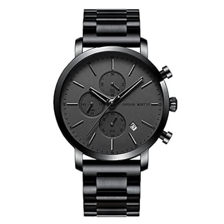 Sản phẩm HANNAH MARTIN Men's Watches Stainless Steel Waterproof Analog Quartz Business Chronograph Wrist Watch for Men, Black (Black), black black, Versatile đang được bán với giá ưu đãi là $55.3175 tại nước Nhật.