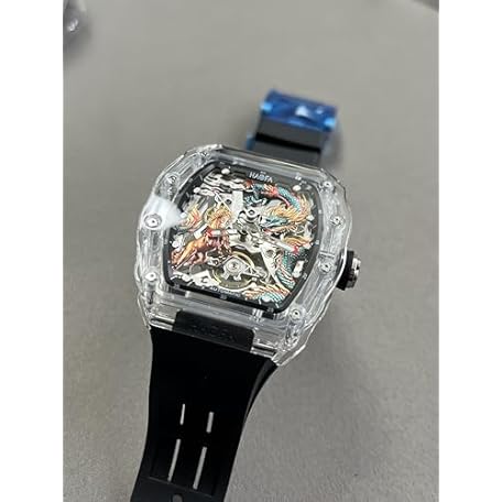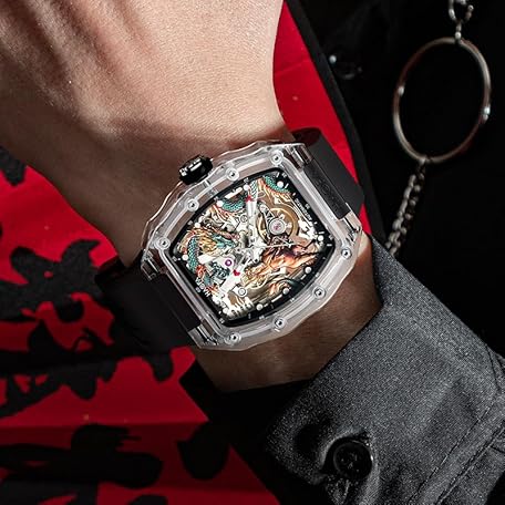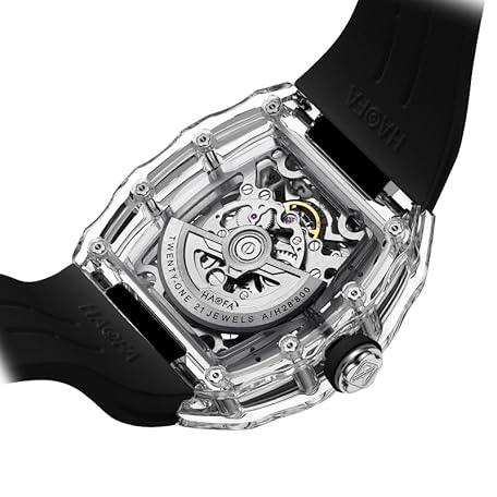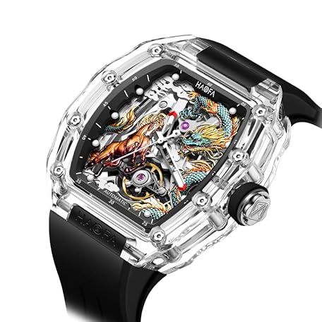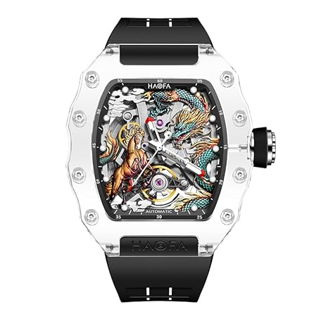 Thông tin sản phẩm HAOFA Men's Skeleton Watch, Mechanical Automatic Winding, Quartz Glass Case, Ryoma Dial, Power Reserve, 72 Hours, Hollow Dial, Tonneau Shape, Luminousness, Waterproof, Gentleman Wristwatch, Gift for