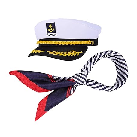 [HAPINARY] Captain's Hat and Matching Scarf, Durable Material, Uni Yacht Captain Hat, Captain Thru Party Costume, Stage Performance