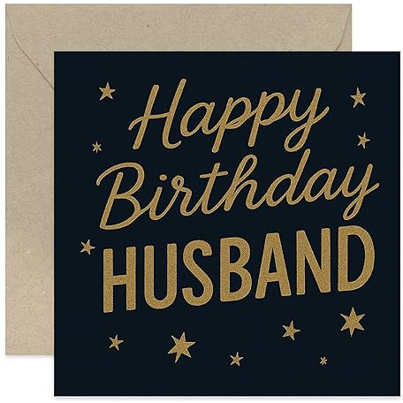 • Happy Birthday Husband Card、ゴールドスターネイビー-スクエア、無地、プレミアム封筒付き