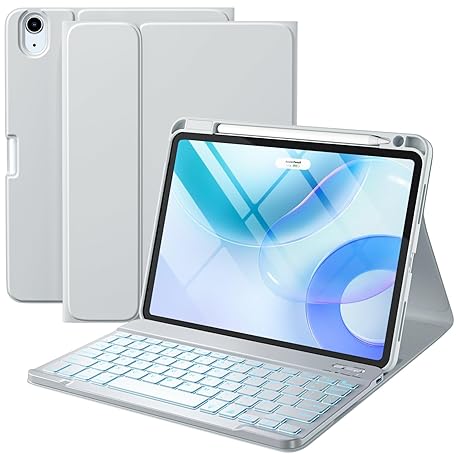 Harvopu iPad Air 11インチ/10.9インチ Air 第5世代第4世代ケース キーボード付き - バックライト付き着脱可能 ペンシルホルダー付き iPad Air 11インチ M3/M2 Air 5/ Air 4用 (グレー)