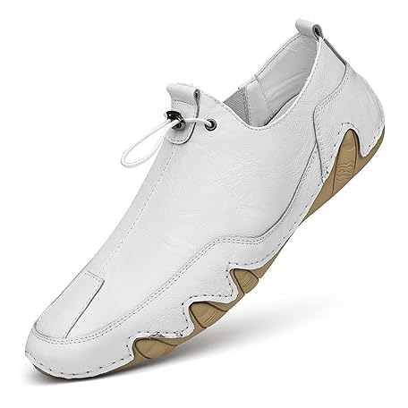 [HASMI] Sports Leather Shoes Men's Leather Soft Leather Small White Shoes Men's Korean Version Trendy Shoes Men All Match Flat Beanie Shoes, white