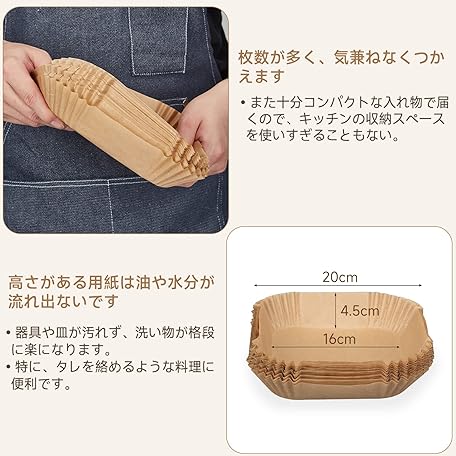 Sản phẩm HAUSPROFI エアフライヤー用紙 ノンフライヤー 使い捨て紙 ノンフライオーブン エアーオーブン 天ぷら敷紙 油紙 クッキングシート シリコーンオイル紙 電子レンジ/オーブン/蒸し器 対応 耐熱/耐油/耐水性 四角形 内径16cm 120枚 đang được bán với giá ưu đãi là $11.445 tại nước Nhật.