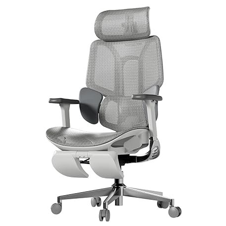 Hbada E3 Airオフィスチェア 椅子 デスクチェ 人間工学 チェア テレワーク 疲れない 人体工学椅 メッシュチェア T字背もたれ 3ゾーンランバーサポート 3Dヘッドレスト 約140度リクライニング グレー E3 (3D アームレスト・オットマン有り)