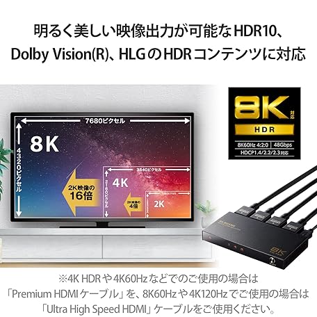 • エレコム HDMI切替器 8K60Hz/4K120Hz対応 【PS5/PS4/PS3/Switch/FireTVStick対応】 3入力1出力 自動/手動切替 8K 4K 対応 ブラック DH-SW8KP31BK