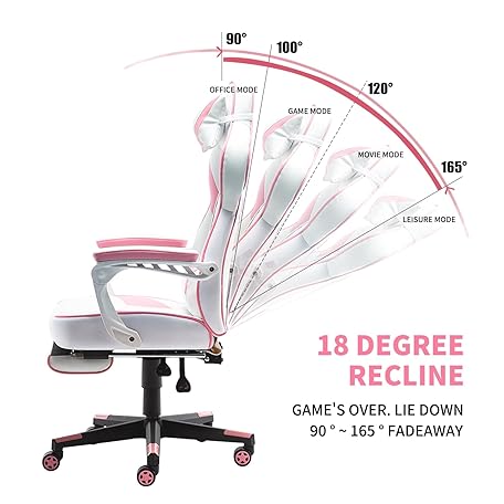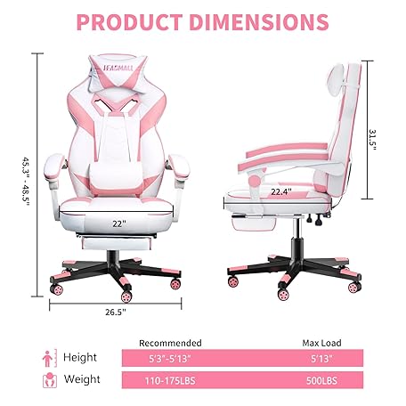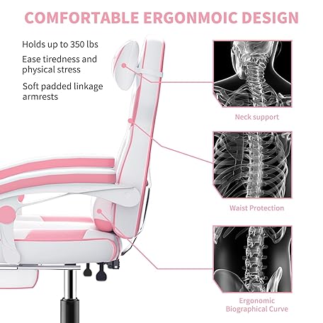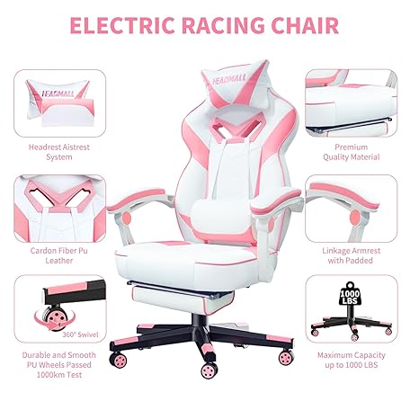 Thông tin sản phẩm HEADMALL Gaming Chair with Footrest Ergonomic Listed Company Video Game Chair with Lumbar and Head Pillow for Adults, Teens, Secret Lab, Pink & White
