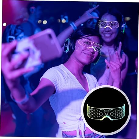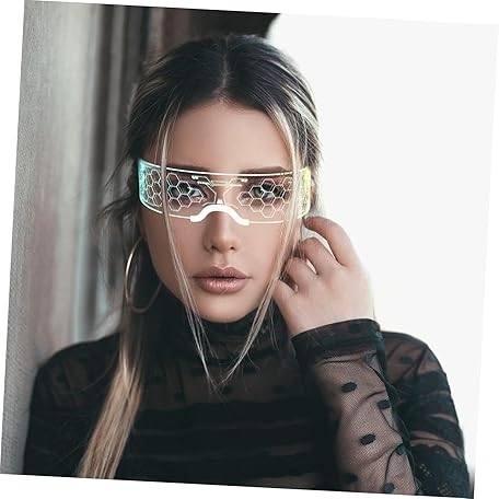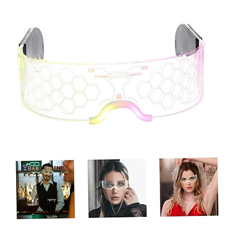 [Healeved] Luminous Visor Glasses Durable Acrylic Eye-caring Long Wearable Futuristic Glow Glasses for Party Cosplay Bar Club Photography Props