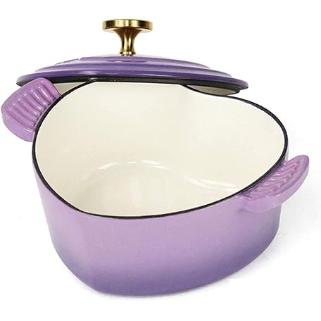 Heart Shaped Enamel Dutch Oven, Enamel Cast Iron Coated Dutch Oven, Casserole Dish, Professional Enamel Cookware Clock Pot for Slowly Cooking Meats and Vegetables, Works on All Stoves, Purple
