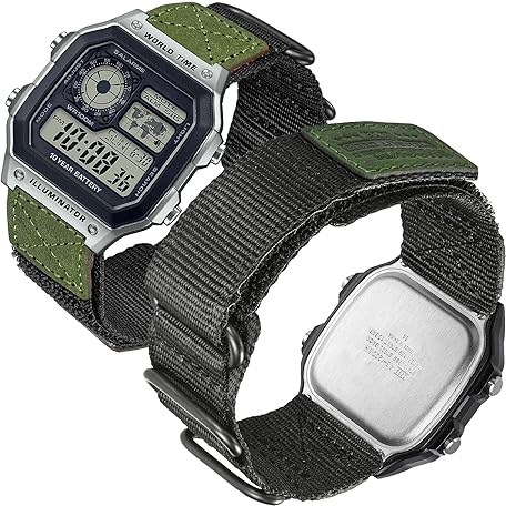 • HEMSUT 18mm ナイロンストラップ Casio用 クイックリリースミリタリースタイル 耐衝撃時計バンド AE-1200 DW-H5600 AE-1000W F-91W A168Wなど用