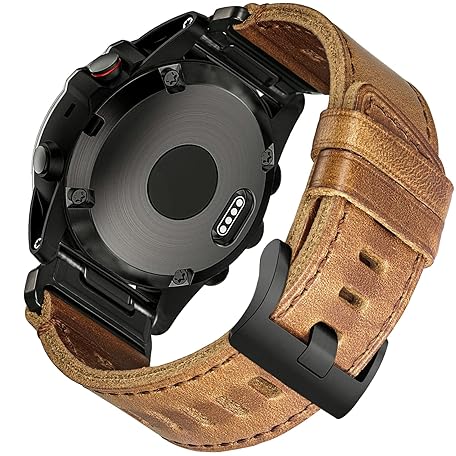 • Hemsut Garmin Watch Leather Band for Fēnix, Forerunner, Vivoactive/Approach, MARQ, Quatix, D2, Instinct, Enduro Series 20/22/26MM Upgraded Connector