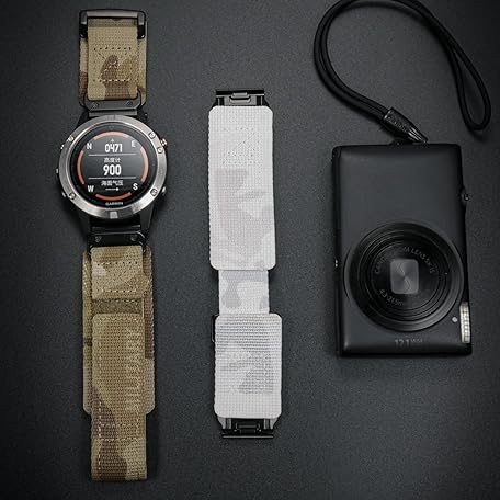 Thông tin sản phẩm Hemsut Garmin Watch Military Nylon Band Camouflage Design for Fēnix, Instinct, Enduro, Forerunner, Vivoactive, Approach, MARQ, Quatix, D2 Series, Upgraded Connector Garmin Quick Fit