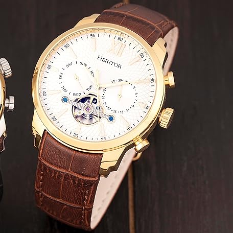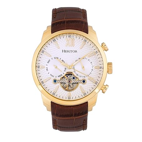 Sản phẩm Heritor Arthur 自動セミスケルトンダイヤル メンズウォッチ HERHR7900, ブラウン/ゴールド/シルバー/ホワイト SKU:HERHR7904, ストラップ đang được bán với giá ưu đãi là $355.1983 tại nước Nhật.
