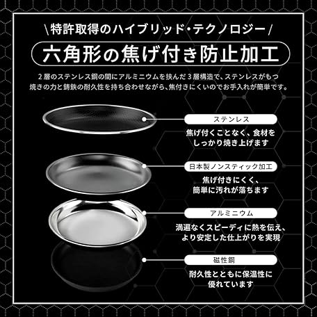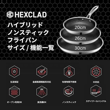 Thông tin sản phẩm HexClad Hybrid Non-Stick Frying Pan, 10.2 inches (26 cm), Non-Stick Treatment, Induction, Oven, Dishwasher Safe (Direct Manufacturer Limited Warranty) [Hexclad] Tempered Glass with Lid