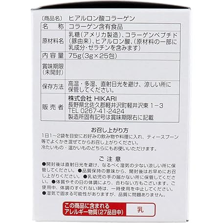 Sản phẩm Hikari(ヒカリ) ヒアルロン酸コラーゲン 3g×25袋 đang được bán với giá ưu đãi là $3.2918 tại nước Nhật.