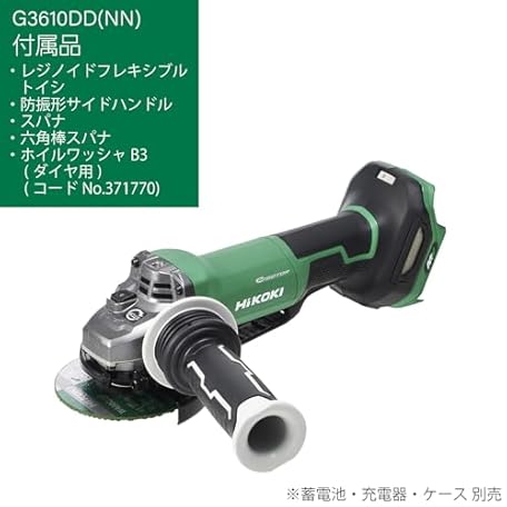 Thông tin sản phẩm HiKOKI G3610DD(NN) Disc Grinder, 36V, Disc Grinder, 3.9 inches (100 mm), Paddle Switch, Stepless Speed, Battery, Charger, Case Sold Separately, Rechargeable, Disc Sander