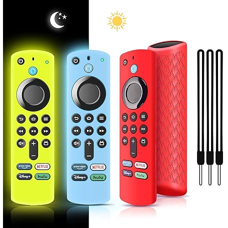 • Hilangsan (ヒランサン) Fire Stick リモートカバー 第3世代 Firesticktvs リモートカバー Fire Stick 4K/4K Max (2021年発売) ブルー&イエロー ファイヤースティックカバー 暗闇で光る保護ケース ストラップ付き (3パック)