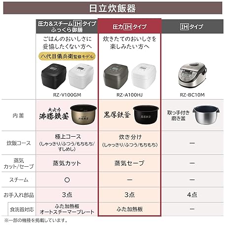 Thông tin sản phẩm Hitachi Rice Cooker, 5.5 kg Pressure IH RZ-A100HJ W, Frost White, Made in Japan, Black Thick Iron Cooker, Steam Saving