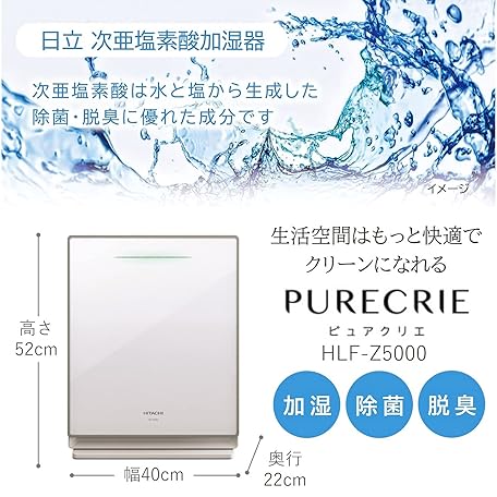 Sản phẩm 日立 次亜塩素酸加湿器 ピュアクリエ HLF-Z5000 パワフル加湿 除菌 ウイルス抑制 脱臭 静音 大容量タンク約3.8L 17 畳 đang được bán với giá ưu đãi là $85.5432 tại nước Nhật.