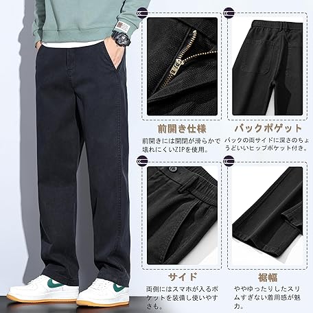 • HMT Men's Trousers, Autumn Clothing, Cold Protection, Wide Tapered Pants, Loose, Easy Pants, Thick, Pants, Casual Pants, Winter Clothing, Bottoms, Long Length, Popular, Plain, Lounge Pants, Large Size