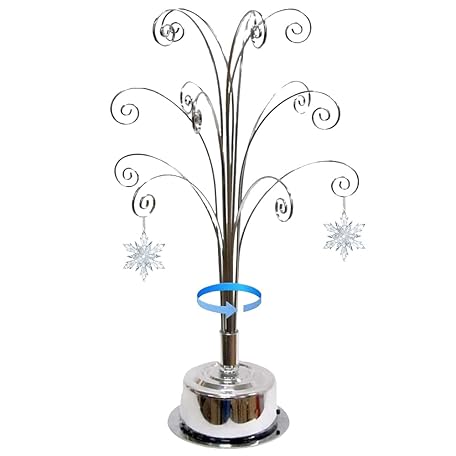 HOHIYA 2018 Christmas Snowflake Crystal Angel Ball Star Ornament Metal Rotating Display Stand for Swarovski Home Party Craft Decoration Birthday Gift 16.75" (Chrome)