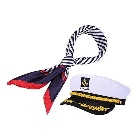 • [Hohopeti] ヨット船長帽とスカーフ 船長帽子 メンズ レディース 船員スル 船舶テーマパーティー用 船舶アクセサリー