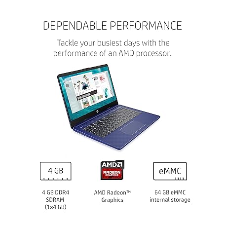 HP 14" Laptop AMD 3020e Dual Core Processor 4GB RAM 64GB eMMC Windows 10 Home S Mode