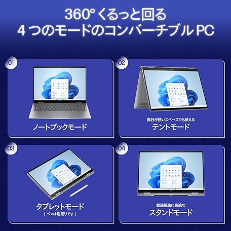 Thương hiệu HP là cái tên nổi tiếng được rất nhiều khách hàng trên thế giới chọn lựa. Với kiểu dáng đẹp mắt, sang trọng, sản phẩm HP ノートパソコン Envy x360 14-fc 14.0インチ 2-in-1コンバーチブル 2.8K OLEDタッチディスプレイ インテル Core Ultra 7 155U 32GBメモリ 1TB SSD Windows11 Home メテオシルバー Windows Copilotキー搭載 AIPC(型番:9W670PA-AAAA) là sự lựa chọn hoàn hảo nếu bạn đang tìm mua một món cho riêng mình.