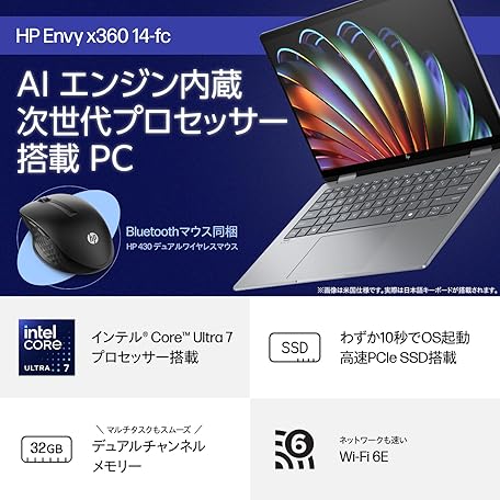 Sản phẩm HP ノートパソコン Envy x360 14-fc 14.0インチ 2-in-1コンバーチブル 2.8K OLEDタッチディスプレイ インテル Core Ultra 7 155U 32GBメモリ 1TB SSD Windows11 Home メテオシルバー Windows Copilotキー搭載 AIPC(型番:9W670PA-AAAA) đang được bán với giá ưu đãi là $1562.733 tại nước Nhật.
