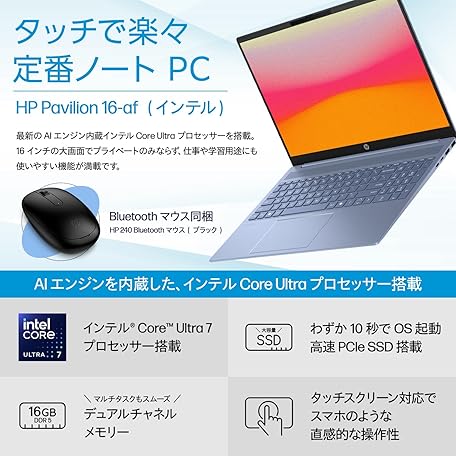 Thương hiệu HP là cái tên nổi tiếng được rất nhiều khách hàng trên thế giới chọn lựa. Với kiểu dáng đẹp mắt, sang trọng, sản phẩm HP ノートパソコン Pavilion 16-af 16.0インチタッチディスプレイ IPS液晶 Intel Core Ultra 7 16GBメモリ 512GB SSD Windows11 Home スカイブルー Copilotキー搭載 AIPC (型番:A1KX6PA-AAAA) là sự lựa chọn hoàn hảo nếu bạn đang tìm mua một món cho riêng mình.