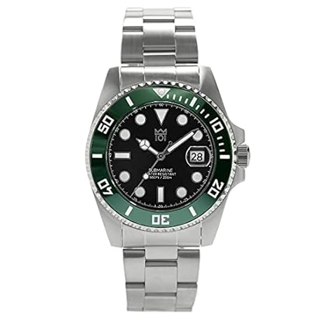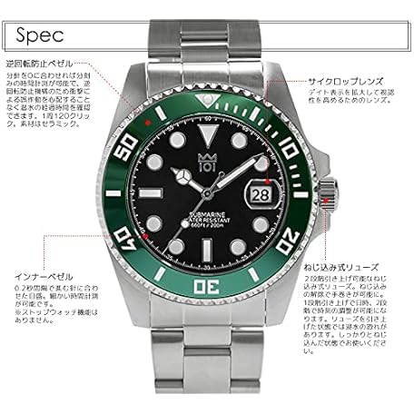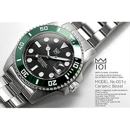 Thông tin sản phẩm HYAKUICHI 101 Men's Dive Watch, Water Resistant to 668.4 ft (200 m), Ceramic Bezel, Calendar, Wristwatch, Metal Band, green black, Bracelet Type